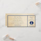 Boarding pass wedding ticket invitations, perfect for your cruise ship wedding in an aged paper with navy blue text design.