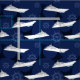 Stylish blue and white cruise ship patterned fabric. Luxury cruise liners illustrated design, with ship's wheels and bold circles in the background. Fabulous fabric for anybody who loves cruising, life at sea, or nautical themes.