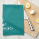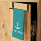 Nautical Custom Boat Name white anchor teal Kitchen Towel