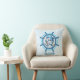 Nautical Cute Dolphin & Anchor in Ship Wheel Throw Pillow