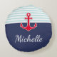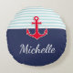 Nautical Dark Blue Personalized Text Design Round Pillow