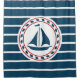 Nautical design with sailing boat decoration in round shape on blue and white striped background