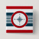 Nautical design with compass decoration in round shape on blue, red and white striped background