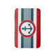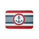 Nautical design with anchor decoration in round shape on blue, red and white striped background