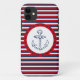 Nautical design with hand drawn anchor decoration on blue, red and white striped background