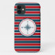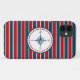 Nautical design with compass decoration in round shape with stars on red, blue and white striped background