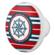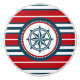 Nautical design with compass decoration in round shape on red, blue and white striped background
