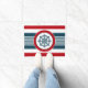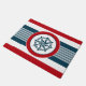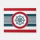 Nautical design with compass decoration in round shape on blue, red and white striped background