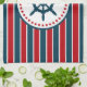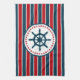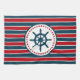 Nautical design with sailing wheel decoration in round shape with stars on red, blue and white striped background