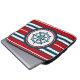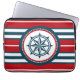 Nautical design with compass decoration in round shape on red, blue and white striped background