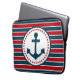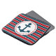 Nautical design with anchor decoration in round shape with stars on red, blue and white striped background