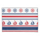 Nautical design with sailing boat and compass decoration on red, blue and white striped background