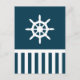 Nautical design with sailing wheel and blue and white stripes decoration on blue background