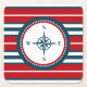 Nautical design with compass decoration in round shape on red, blue and white striped background