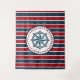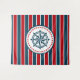 Nautical design with compass decoration in round shape with stars on red, blue and white striped background