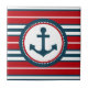 Nautical design with anchor decoration in round shape on red, blue and white striped background