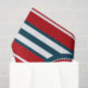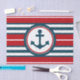 Nautical design with anchor decoration in round shape on red, blue and white striped background