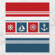 Nautical design with sailing boat, anchor, compass and sailing wheel decoration on striped background