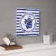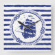 Blue nautical emblem with sailing ship on a striped background | © and ® Bigstock® - All Rights Reserved.