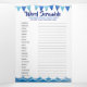 A cute and adorable design of blue bunting; ships wheels; anchors; the sea and shells in blue set against a white background. The outside flap thanks your guests for joining you and the inside has three fun games to play - baby bingo, word scramble and let's play firsts
