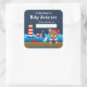 Nautical Girl Bear Red and Navy Baby Bookplate Square Sticker