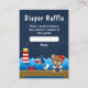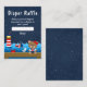This cute and fun diaper raffle enclosure card features a nautical sailor girl bear on a wooden deck with a seagull and a crab. In the background there is a red and white lighthouse, a cute bird on a sailboat, ocean waves and a navy blue starry night sky. The text combines bold and serif fonts for a stylish and modern look. This is perfect for a nautical themed baby shower.
