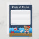 This cute and fun words of wisdom card features a nautical sailor girl bear on a wooden deck with a seagull and a crab. In the background there is a cute red bird on a sailboat, ocean waves and a navy blue starry night sky. The text combines bold and serif fonts for a stylish and modern look. This is perfect for a nautical themed baby shower.