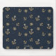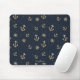 Nautical Gold Anchor & Helm Pattern on Blue Mouse Pad