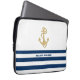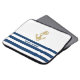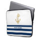 Nautical,Gold Anchor Navy Blue White Stripes Laptop Sleeve