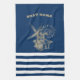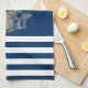 Nautical,Gold Seashells Navy Blue Stripes Kitchen Towel