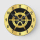Nautical gold ship/boat wheel on black round clock