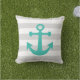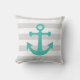 Nautical Grey Stripes Turquoise Anchor Throw Pillow