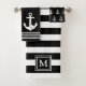 Nautical Heart Anchor Black White Stripes Monogram Bath Towel Set
