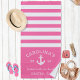 Nautical Heart Bachelorette Weekend Pink & White Beach Towel