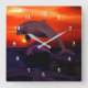 Nautical Jumping Dolphins Orange Ocean Sunset Square Wall Clock