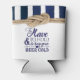 This nautical custom wedding can cooler features the phrase "To Have and To Hold to Keep your Beer Cold". Design Has navy and white watercolor stripes with a nautical rope knot. Customize the other side with your initials, names, and wedding date.