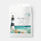 Beautiful baby shower favour bag with a nautical black and white lighthouse, starfish and shells. Perfect for a wedding. The words can be changed to suit your own details or requirements