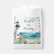 Beautiful birthday party favour bag with a nautical black and white lighthouse, starfish and shells. Perfect for a birthday party. The words can be changed to suit your own details or requirements