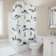 A classic nautical lighthouse pattern shower curtain in navy and soft gold tones, featuring coastal waves and soaring seabirds. A great choice for ocean lovers, beach enthusiasts, and anyone who enjoys timeless maritime style.
