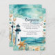 Beautiful wedding Reception Card with a nautical black and white lighthouse, starfish and shells. Perfect for a wedding. The words can be changed to suit your own details or requirements