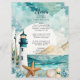 Beautiful wedding menu with a nautical black and white lighthouse, starfish and shells. Perfect for a wedding. The words can be changed to suit your own details or requirements