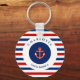Nautical Marine Navy Blue Red White Stripes Keychain