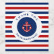 Gorgeous timeless nautical sailor style design with red anchor on the centre with blue and white circle background with personalized texts on the top and lower side. The design has red white and navy blue strips pattern on the background. Suitable personalized gift for your loved ones. Customizable in Zazzle with your own text for a personalized design. Check out my store for matching items!