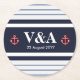 Nautical Marine Navy Blue White Stripes Round Paper Coaster