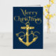 Nautical Merry Christmas Anchor Navy Gold Foil Holiday Card