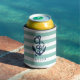 Nautical Mint Stripe & Navy Anchor Personalized Can Cooler