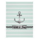 Trendy poster with grey watercolor anchor on a mint green & white striped background. You can also personalize the design with custom text under the anchor.
