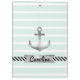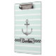 Nautical clipboard with grey watercolor anchor on a mint green & white striped background. You can also personalize the design with custom text under the anchor.
