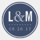 Nautical Modern Navy Wedding Monogram and Date Classic Round Sticker
