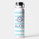 Nautical Monogram Beach Vibes Blue White Striped Water Bottle